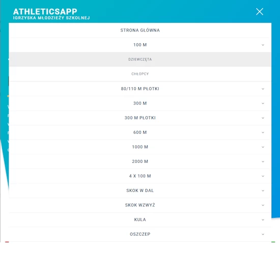 AthleticsApp - dostęp do aplikacji webowej przeznaczonej do obsługi konkurencji lekkoatletycznych oraz klasyfikacji współzawodnictwa szkół podstawowych w ramach Igrzysk Młodzieży Szkolnej w lekkiej atletyce.